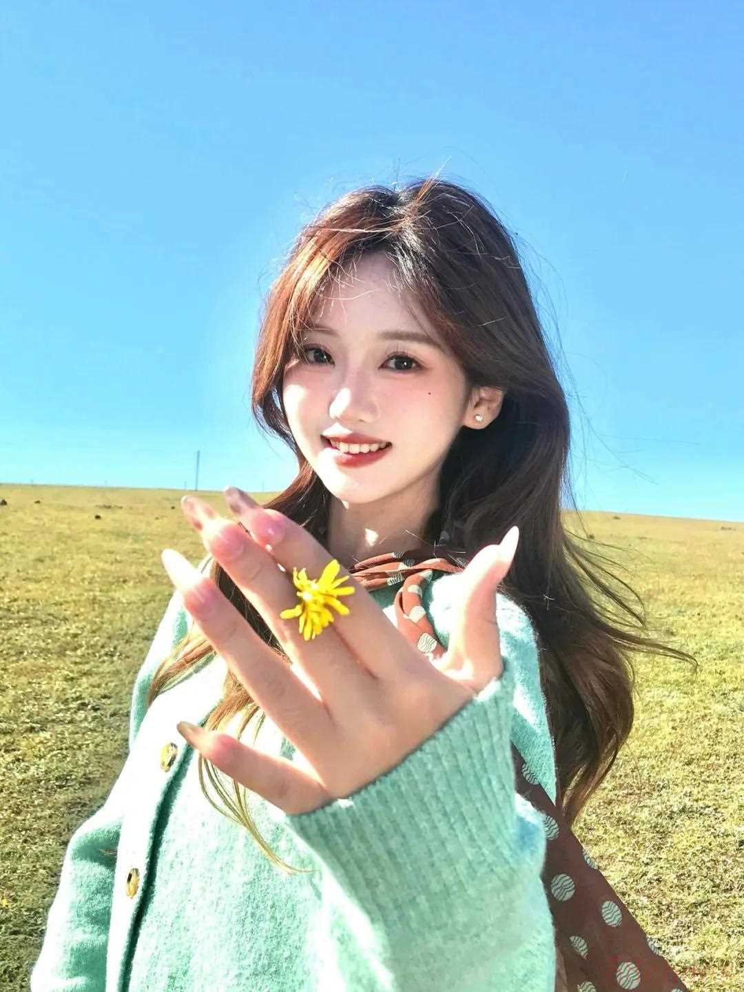秋天的花色总是温柔的,拿在手里就自带氛围,手指夹着花递向镜头,好像在分享自己的小心情,眼神轻轻地看着镜头,笑一点点就够,这个姿势特别适合阳光透过树叶的时候拍,柔和又漂亮