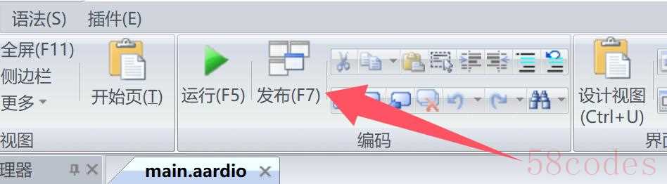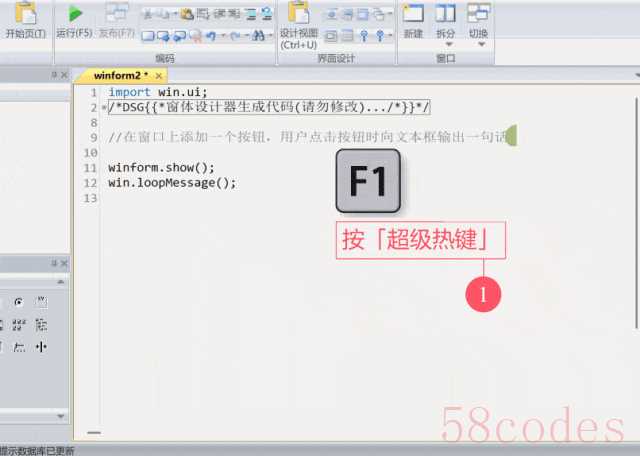 双击打开程序入口代码 main.aardio ,切换到代码视图,输入注释语句: