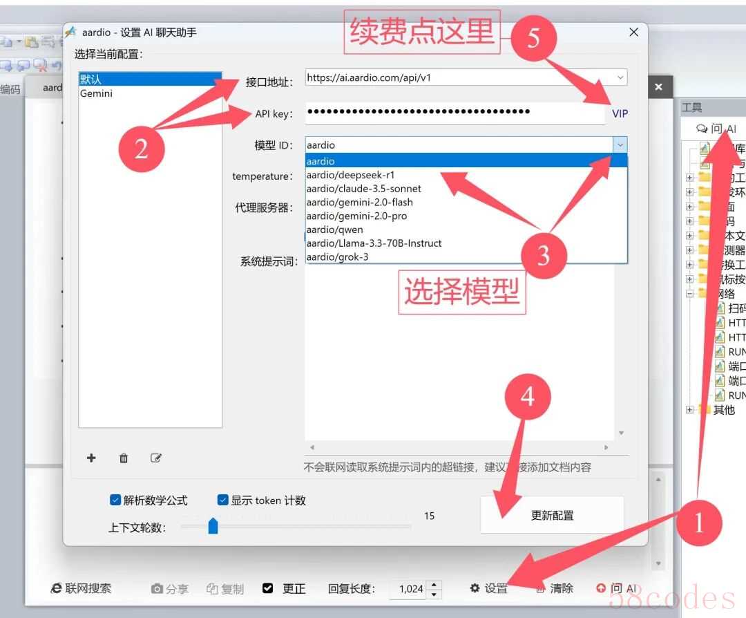注意 aardio 的 AI 助手默认的 API key 与 ImTip 相同:
