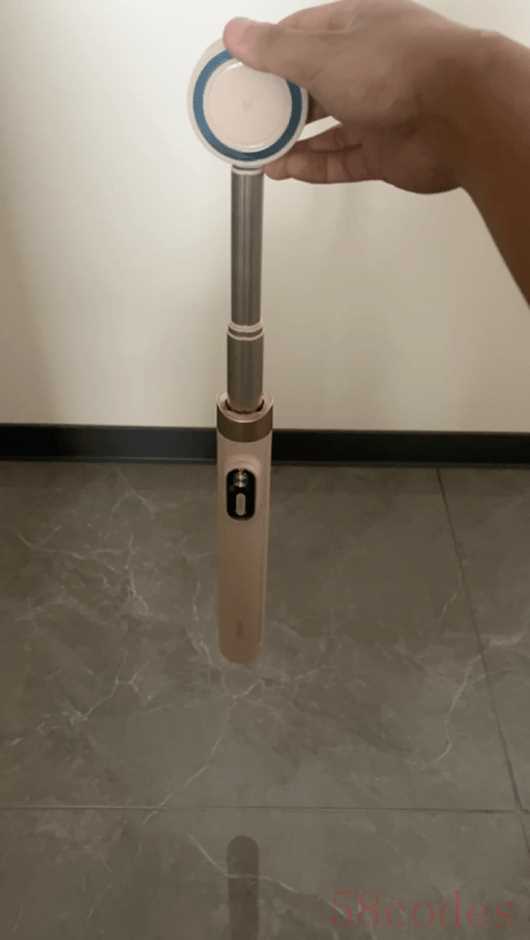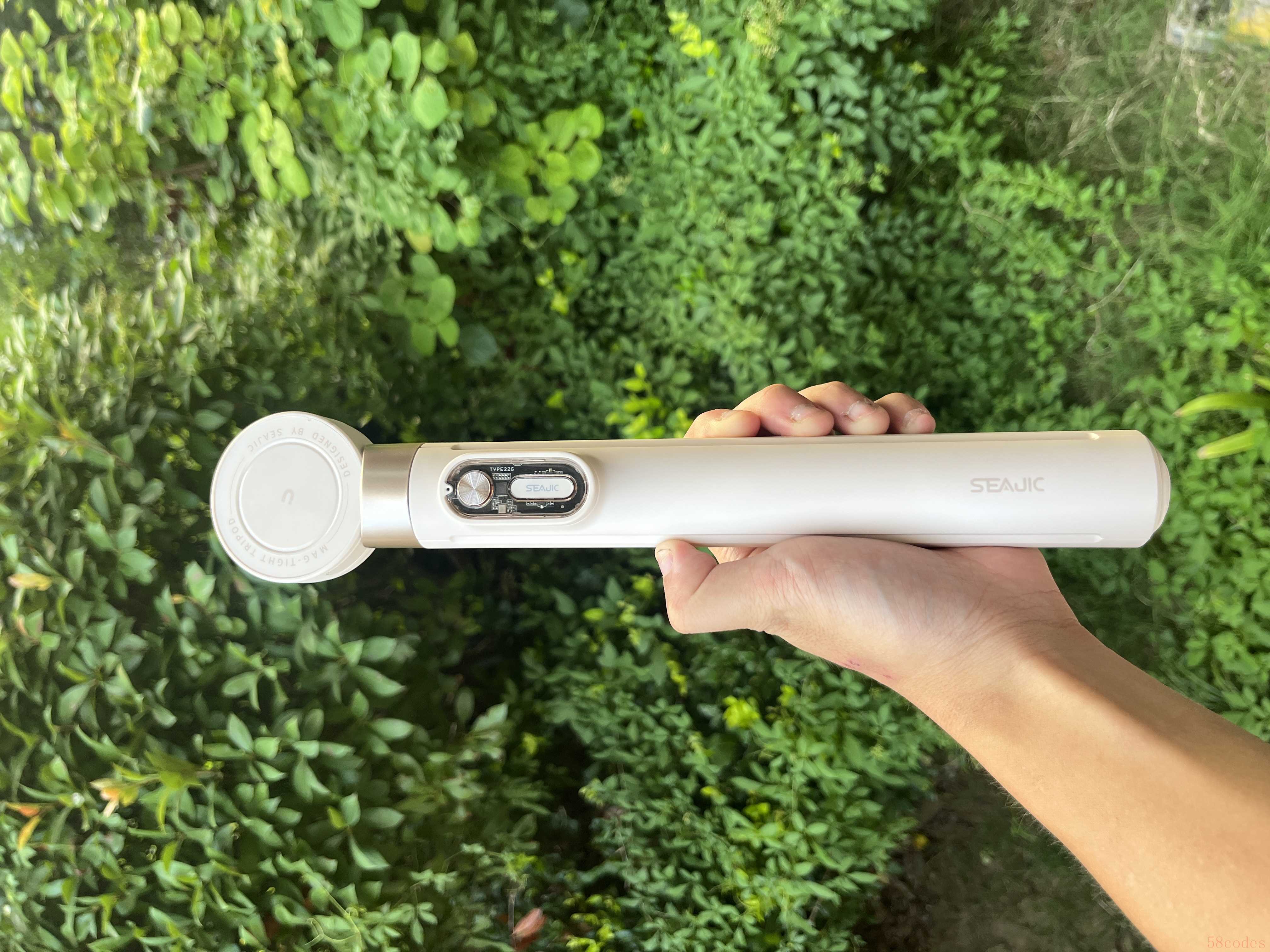 而且,不管是平整路面,还是草地,还是有点坡度的石阶,都能成功弹开,基本涵盖了我们生活中绝大部分拍摄场景了。2.双面磁吸这又是一个和普通自拍杆不一样的了,大部分就是夹子,少部分高端自拍杆是一面磁吸(吸手机),但是SEAJIC做了两面磁吸,一面吸附手机,另一面可以加装补光灯、磁吸投影屏这些环形磁吸配件,一贴即用,又节省了拍摄准备时间了。