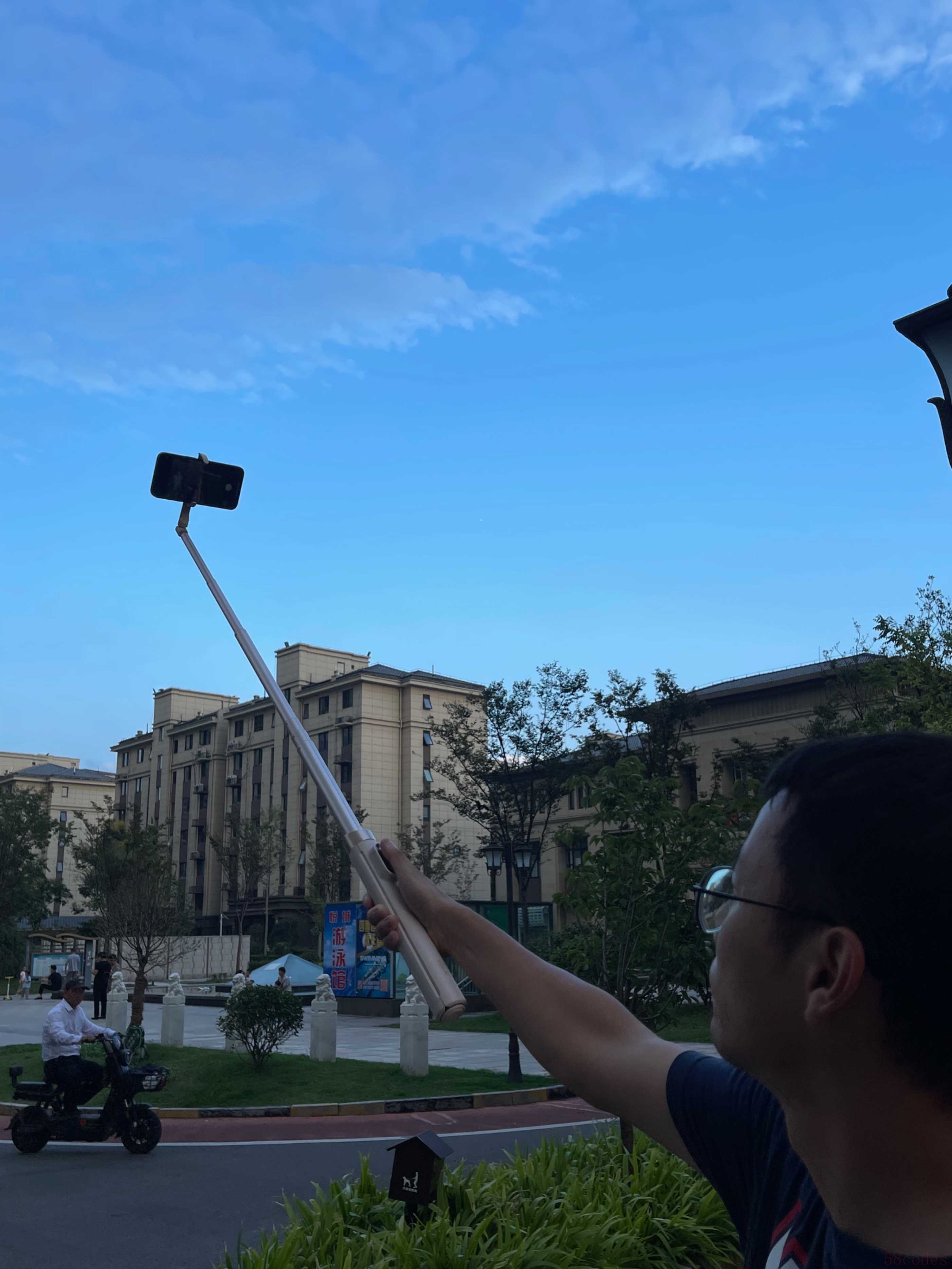 三、核心功能1.落地开传统自拍杆虽然很多有三角架功能了,不过手动支开麻烦了好多,尤其是需要快速固定抓怕的时候,那就更容易错失时机了。SEAJIC的这款解决了这个问题,在收纳状态下垂直放下,底部接触地面的时候就能自动弹开,就好像天女散花一样哈哈哈。该出手时就出手,不用出手时就不用出手,把自拍杆拿出来,随手松开,再去拿手机固定,一气呵成,一点点都不耽误。