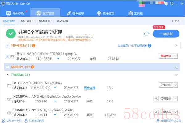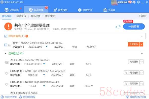 ②、软件会自动识别显卡型号,推送相应的驱动更新到列表,用户选择升级驱动便可以;
