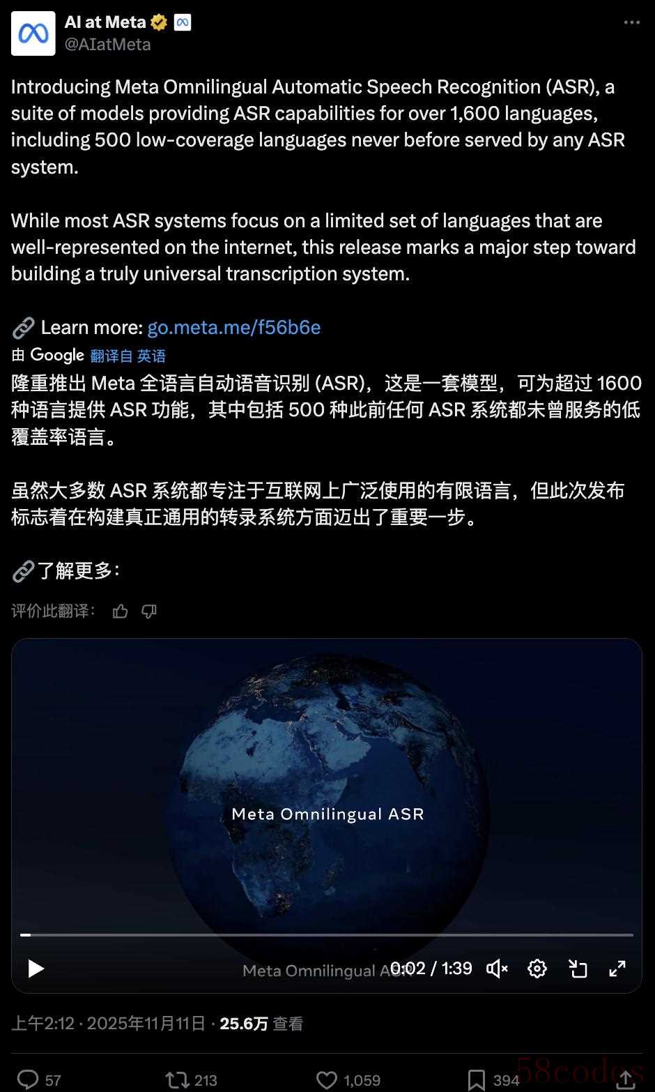 Meta选择将这一庞大的多语种ASR系统在GitHub上完全开源,采用Apache 2.0许可发布模型和代码。