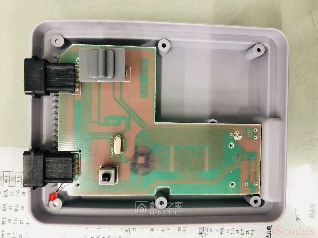 作为一个电子强迫症爱好者,有东西怎么能不拆!真简洁,单面板,还好没用那种纸质的板子,正面量开关,一晶振,还省掉一个电容:
