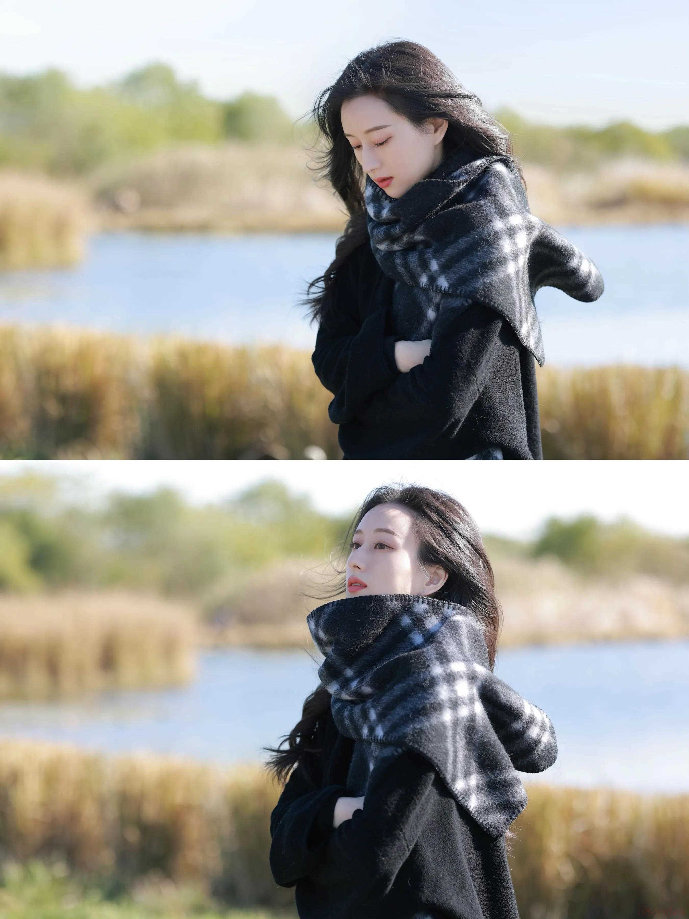 侧脸仰头不仅有氛围感,对大家表现力的要求也低一些~大家在拍的时候,加多一个抓围巾的动作,姿势很符合场景,还能自然地解决手姿问题~