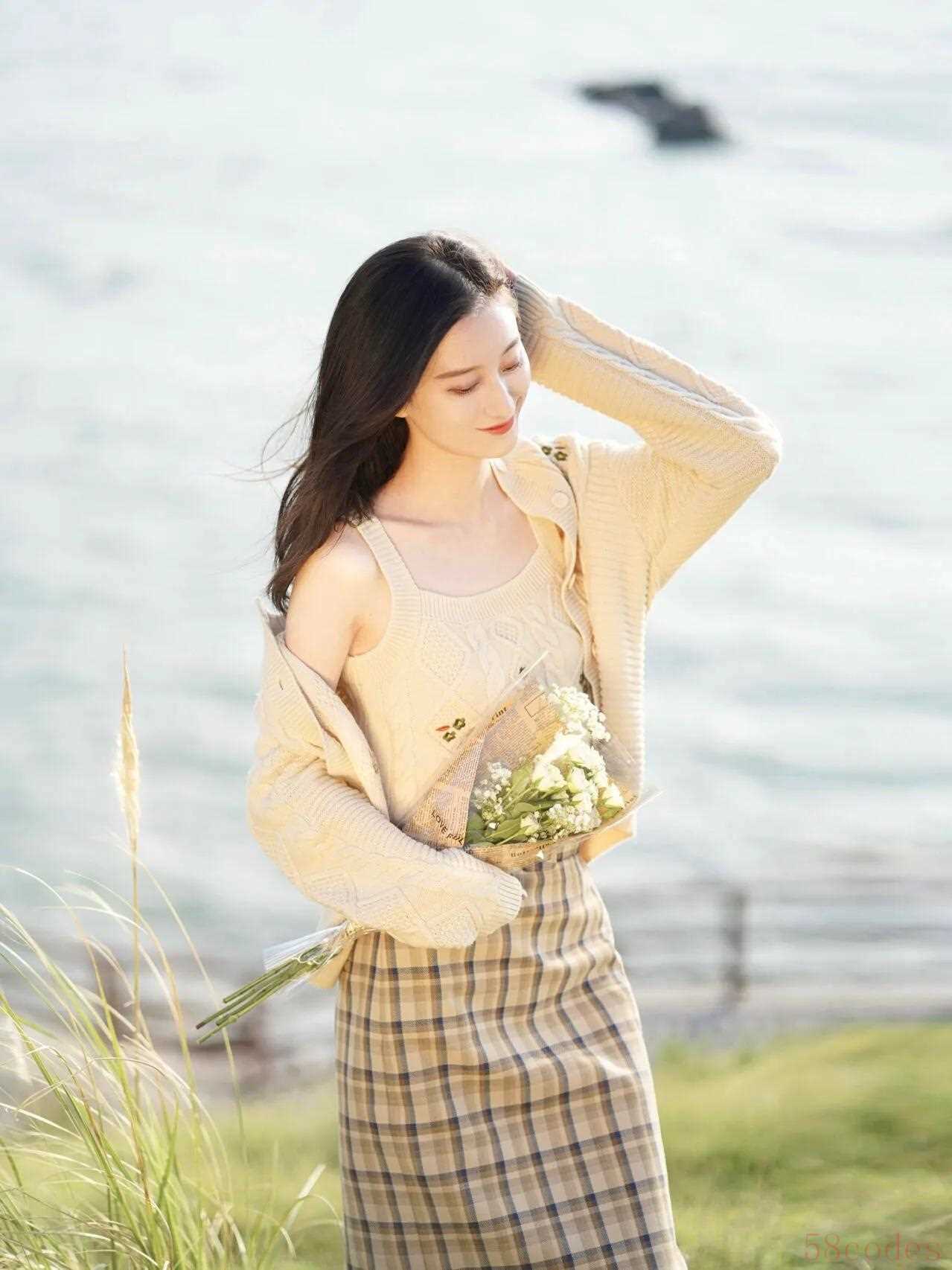 波光粼粼的湖面和魅力的撩发动作结合,就是吸睛所在~背对湖面站立,大家一手捧花,一手抬起来温柔撩发,动作需要连贯、自然,手指也要弯曲才不会生硬~