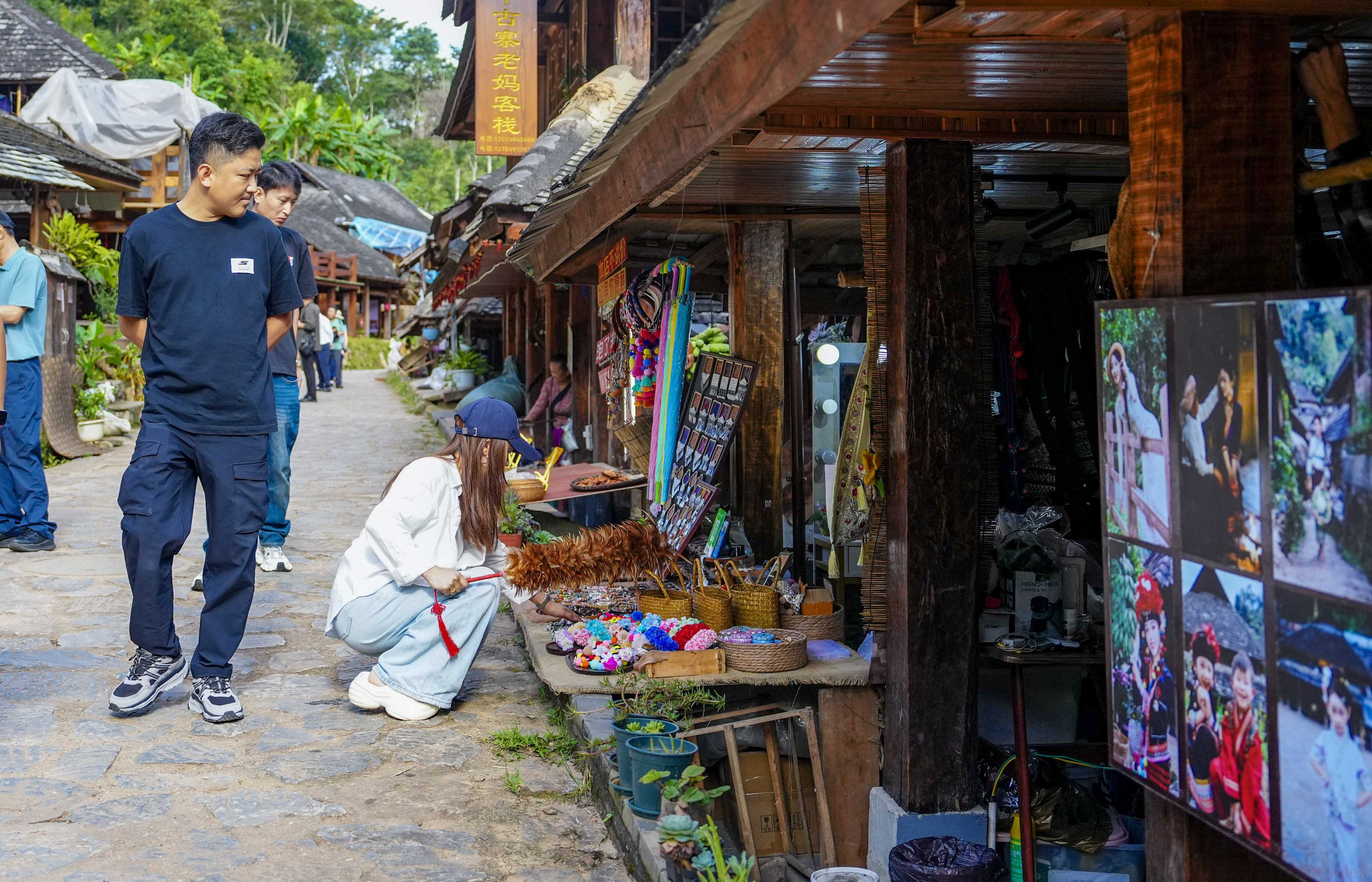 9月27日,游客在景迈山糯岗古寨游览。新华社记者 陈欣波 摄