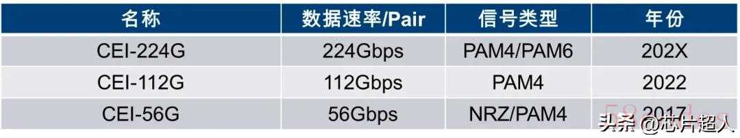 图1:高速以太网标准的发展历程OIF(Optical Internetworking Forum)的CEI框架同样在推动着高速互连技术的发展。从CEI-56G到CEI-112G,再到CEI-224G,这些标准不仅支持了单通道224Gbps的速率,还面向芯片至光引擎(D2OE)、背板及铜缆互连等多种应用场景,为高速互连技术的发展提供了有力的支撑。