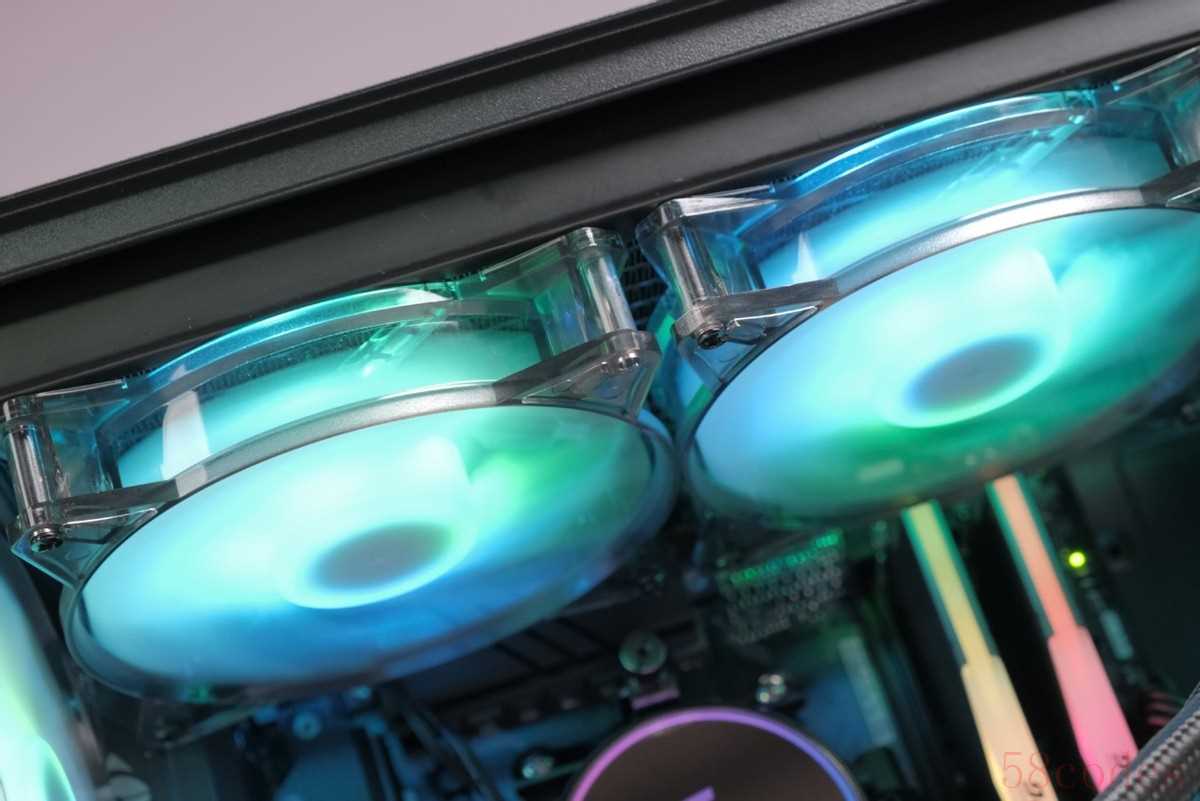在前置面板这里,我们可以使用最大360的水冷或者3*12cm/2*14cm的散热风扇,装机的时候可以放心选配高性能水冷,这里我装的是两把12cm的冰轮2风扇。