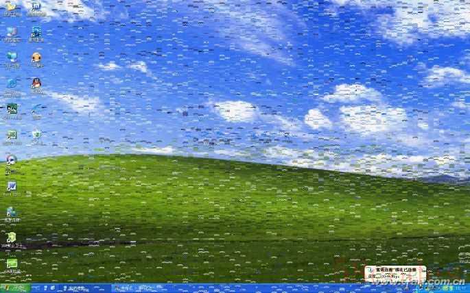 花屏是仅次于屏幕不显示的重大问题(图6),由于信息经常显示不完整,它其实也影响了我们对故障的判断。花屏本身已经可以确定是显示系统的问题,其中比较常见的块状花屏一般是显存问题。有些带有明显偏色的显示问题可以考虑是显示器或显示接口、连线的问题,应检查接口是否有断针,连线是否有被压扁,弯折过大等问题。