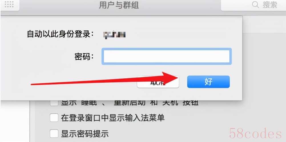 8.然后弹出密码框,这里要输入该用户的密码,如果是空密码就直接点击‘好’按钮。这样我们每次开机就自动以这个用户登录系统了,而无需开机密码。