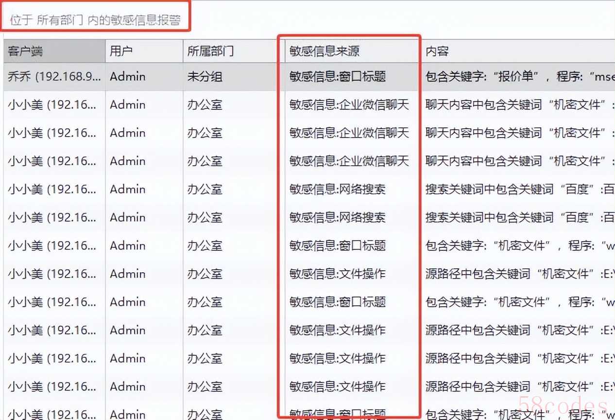 一旦检测到敏感代码的复制、外发等风险行为,管理员端会立即收到报警,显示操作人、时间及具体行为,像给核心代码装了 “预警雷达”,可提前拦截泄密行为。