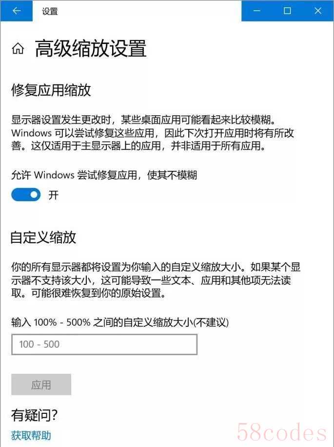"尝试“高级 scaling 设置” (Advanced scaling settings):
