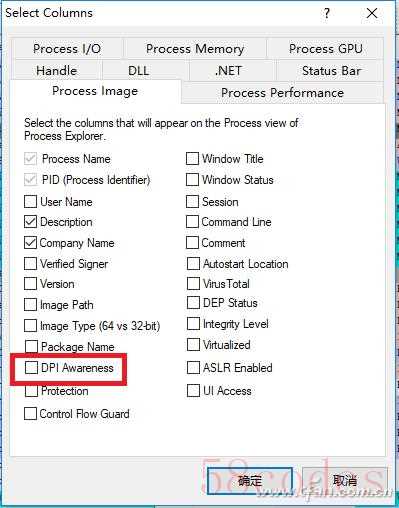如果大家不太确定现在安装的第三方程序能够支持DPI缩放,可以用Process Explorer这款软件(公众号界面输入DPI获取下载地址)检测下。启动后,现在软件界面任务栏上依次选择“View-Select Columns…”