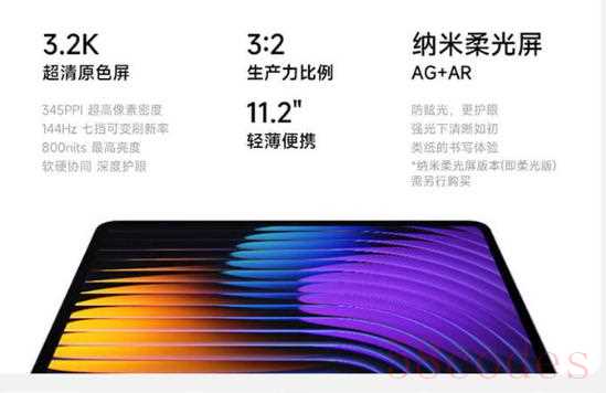 - 屏幕:11.2英寸3:2比例,3.2K分辨率345PPI,12bit色深支持687亿色,P3广色域,800nits峰值亮度,144Hz自适应刷新率,全程DC调光+莱茵三重护眼认证