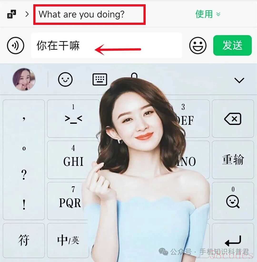 你在这边输入中文,那边就能实时显示翻译结果,检查没有问题之后,点“使用”就能发送,