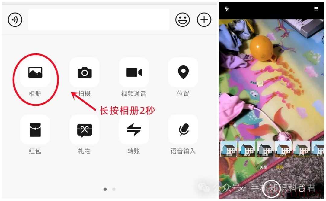 想在微信里面,给朋友发张清晰的照片,别直接点拍摄!在聊天框里,别点“拍摄”,而是长按“相册”2秒,你的手机原生相机就会启动。在这里,美颜滤镜任你选,画质好到爆,不会被压缩,而且功能齐全。拍完直接发送,照片质量直接吊打微信内置相机,清晰数十倍!