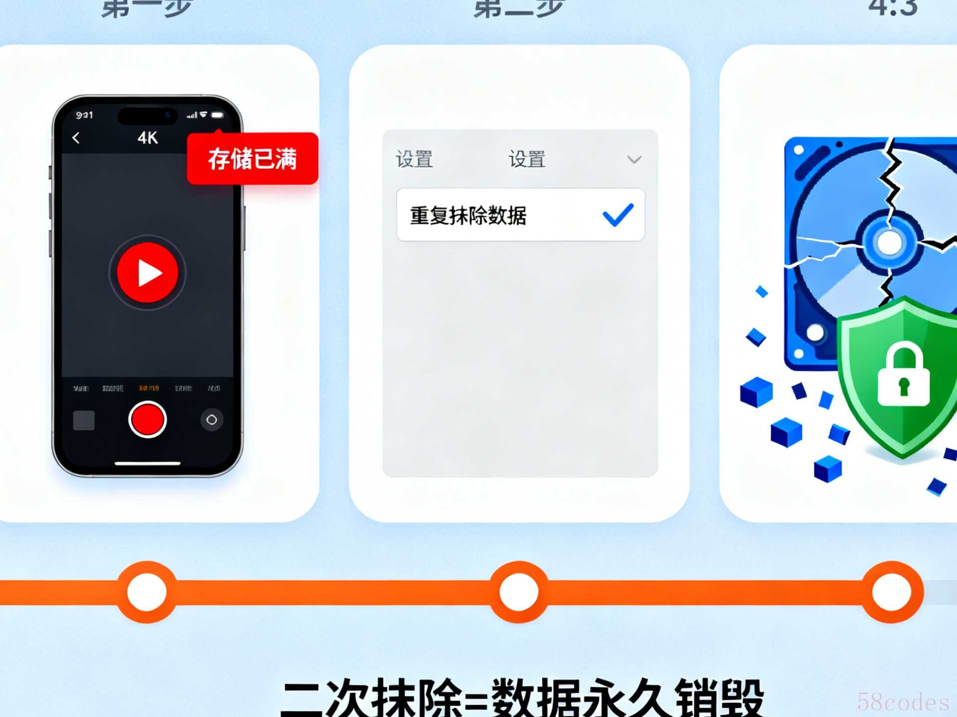 第三步:占满存储+二次抹除,彻底断绝恢复可能