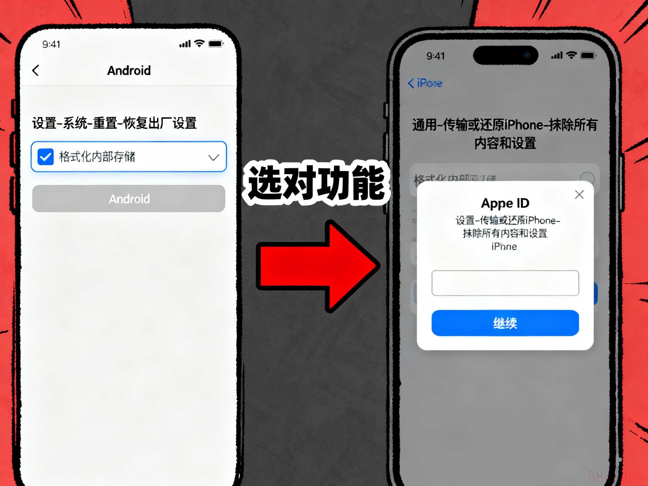 这一步的核心是“选对抹除功能”,很多人误点“还原设置”导致数据未清除,一定要仔细核对。