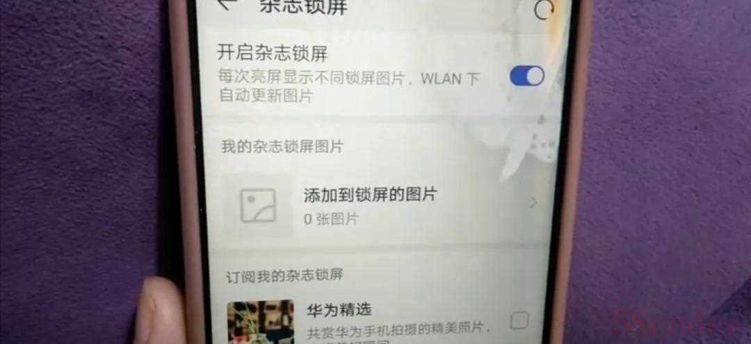那么在这里就可以看到开启杂志锁屏,这是手机默认打开的状态。因此每次亮屏的时候就会显示好看精美的图片。虽然说好看,但是没有其他的作用,还会占用手机的空间内存了,还会耗费手机的流量和电量,真的是得不偿失了。