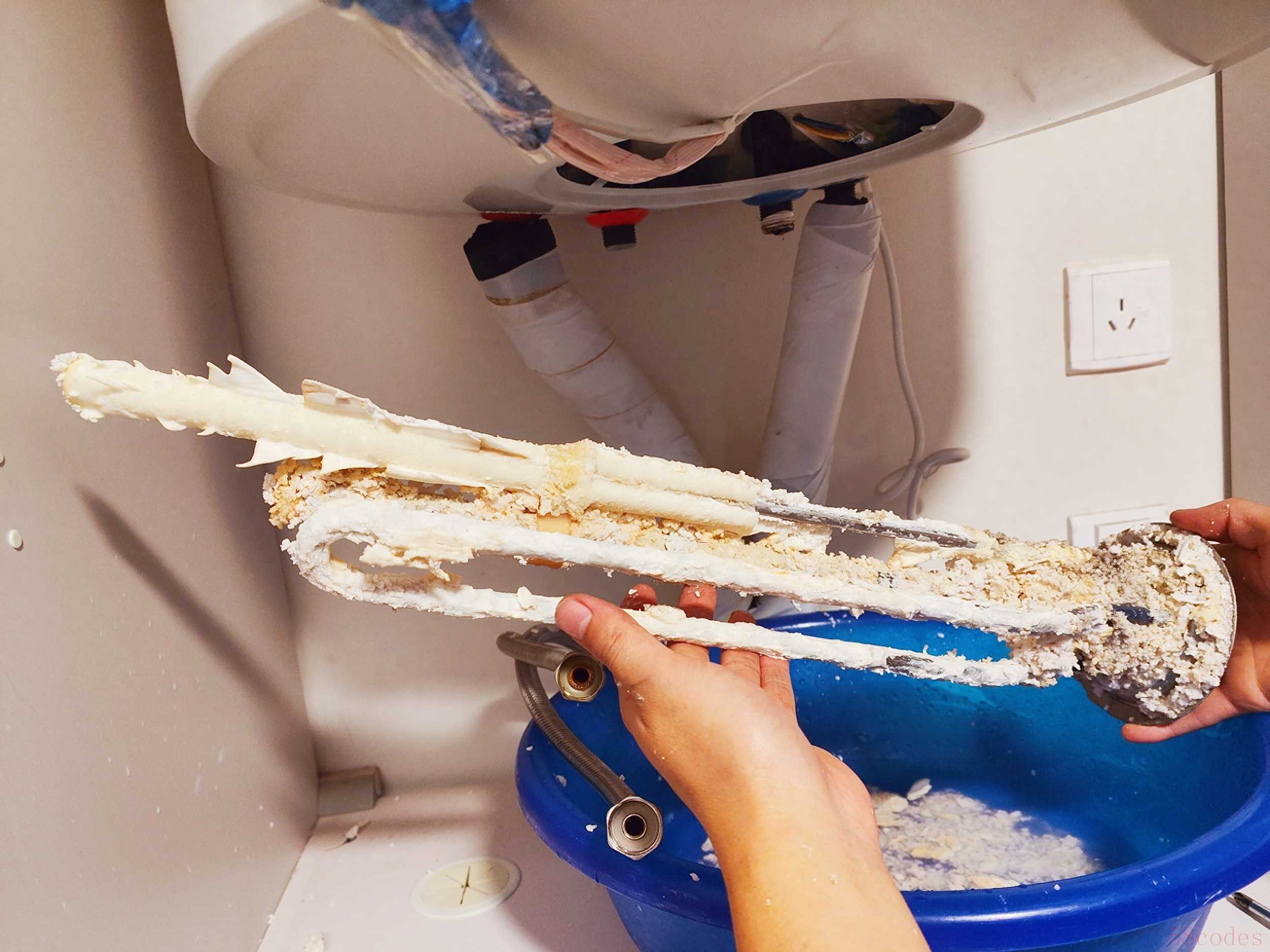 售后,或者专门的清理门店,提供的是拆机清理服务:把电热水器拆开,把内胆里的水垢用手掏出来。这种清理,只有专业人士才能做,自己不要动手。