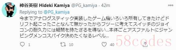数分钟后,神谷英树又在自己的推文评论区“补刀”称:“如今市场上推出的所有自带遥感控制的游戏机本人都买过,但其他游戏机从未发生过遥感漂移故障。这让我不由得怀疑NS JOYCON手柄的质量…”