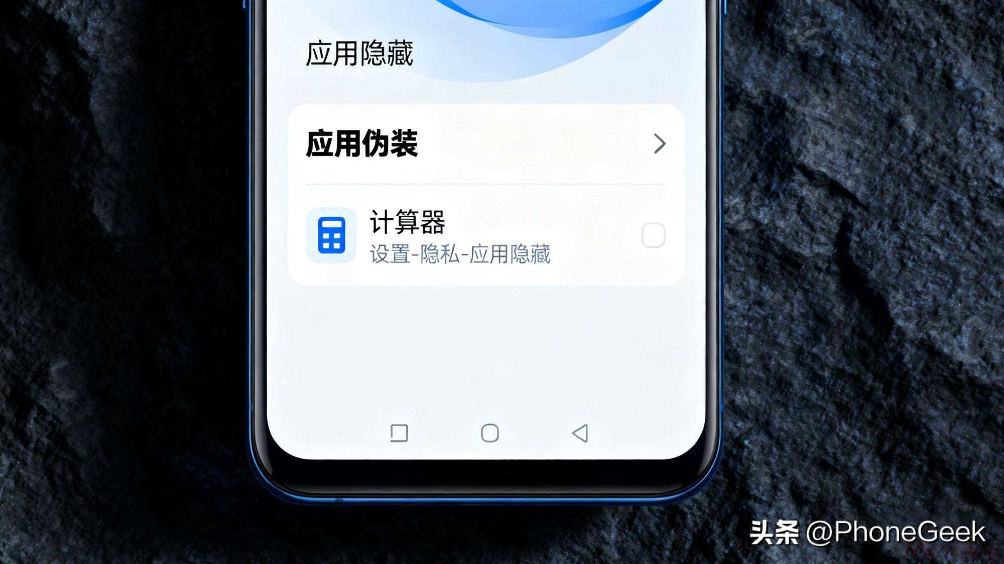 除了错误密码跳转计算器,OPPO的应用锁伪装体系还有更丰富的玩法。在"设置-隐私-应用隐藏"界面,用户可将敏感应用直接伪装成电话、计算器等系统级应用图标。