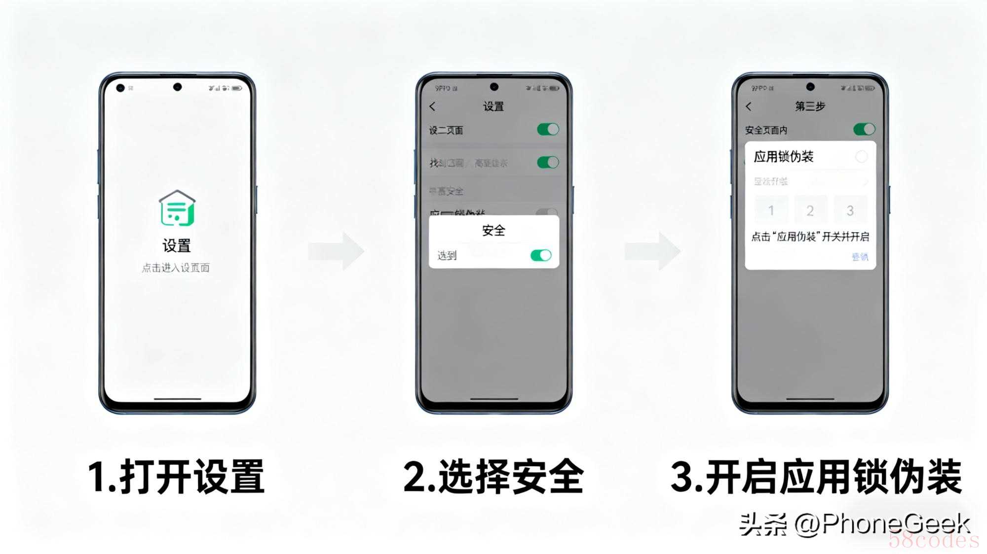 设置这套伪装体系的操作门槛极低,全程无需复杂操作。以OPPO最新机型为例,只需三步即可完成: