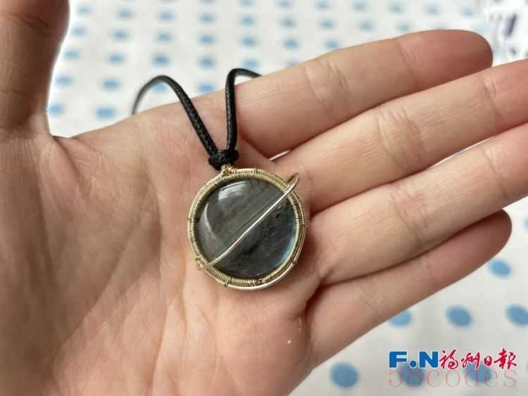 唱唱(化名)这次戴着的拉长石项链。受访者供图