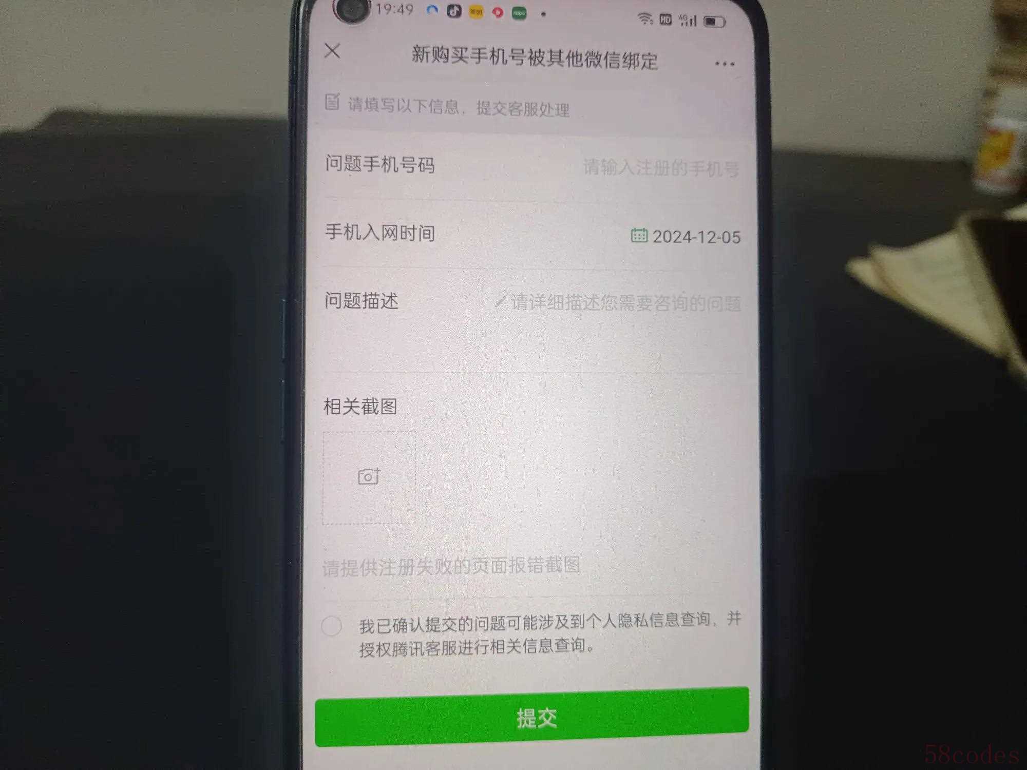 接着填写问题描述,可以简单描述遇到的问题,比如“新购买手机号被其他微信绑定了”。(如上图所示)