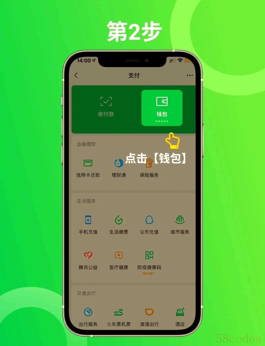"第二步:进入“钱包”,找到并点击“银行卡”"