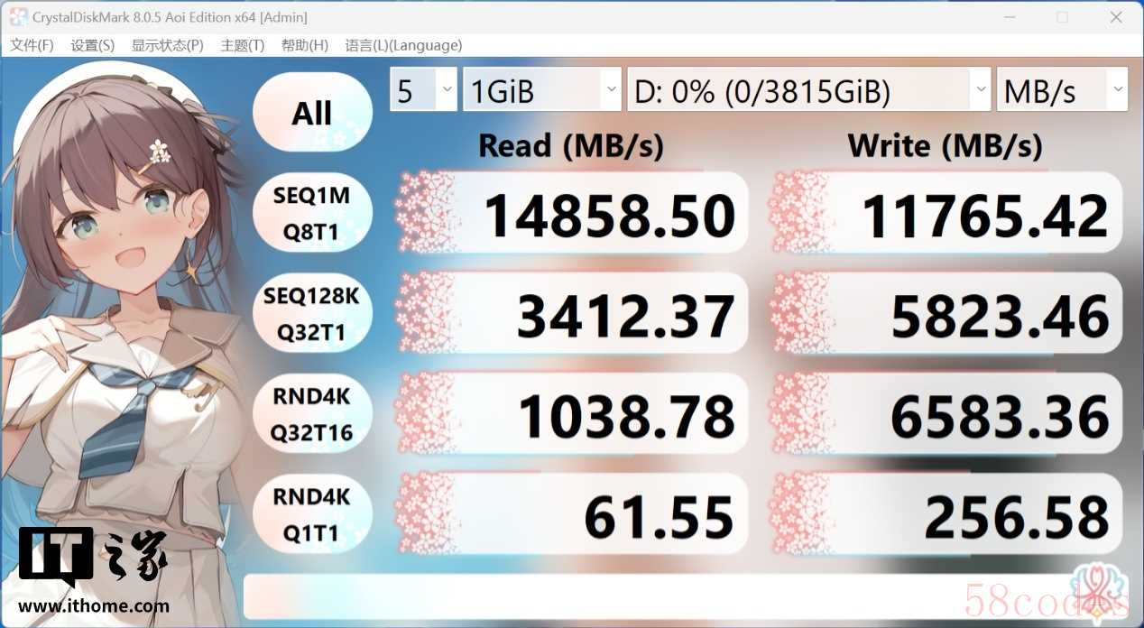 硬盘方面,影驰联盟 B650M Wi-Fi 黑武士 PLUS 主板较为少见地提供了 2 个 PCIe5.0 M.2 插槽,这对追求高速读写和游戏加载表现的用户来说无疑很有诚意也很实用。IT之家在第二硬盘位上加装一块 PCIe Gen5x4 规格的固态硬盘。经过实测顺序读写速度能够跑满硬盘标称的最大速率,4K Q1K1 队列的读写速度也达标,但是高队列深度下的成绩并未跑满,考虑到 PCIe5.0 硬盘对于散热的强需求,更建议大家使用自带散热马甲的 PCIe5.0 固态硬盘。三、性能测试接下来进入理论性能实测,这次我们分两组进行对比,一组是 CPU 完全默频,第二组则是在 BIOS 中开启 PBO 模式,内存部分默认均开启 EXPO 和高带宽低延迟选项。
