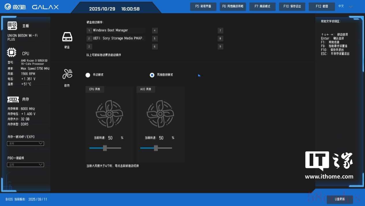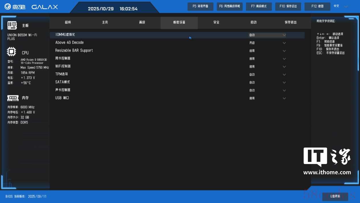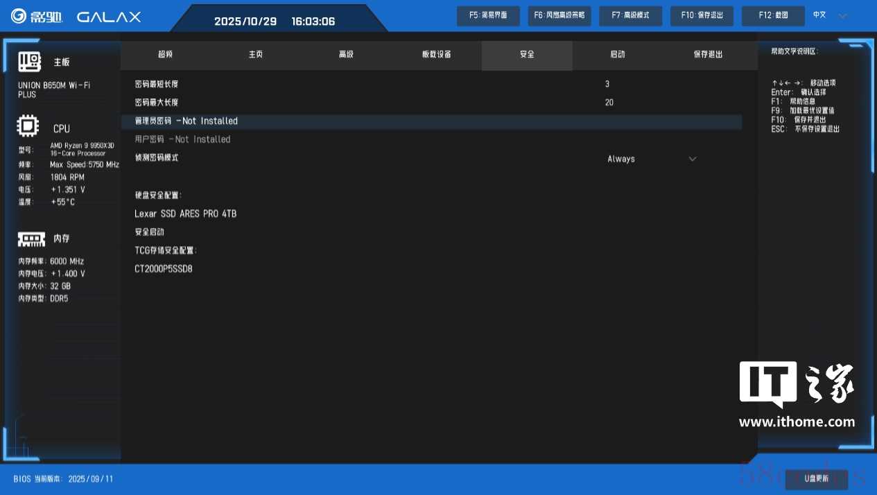 另外,从 BIOS 的设计上可以看出,影驰官方在 BIOS 上希望能够化繁为简,让更多小白用户快速上手,降低 DIY 用户的使用门槛,这也是影驰联盟 B650M Wi-Fi 黑武士 PLUS 主板的一大优势。