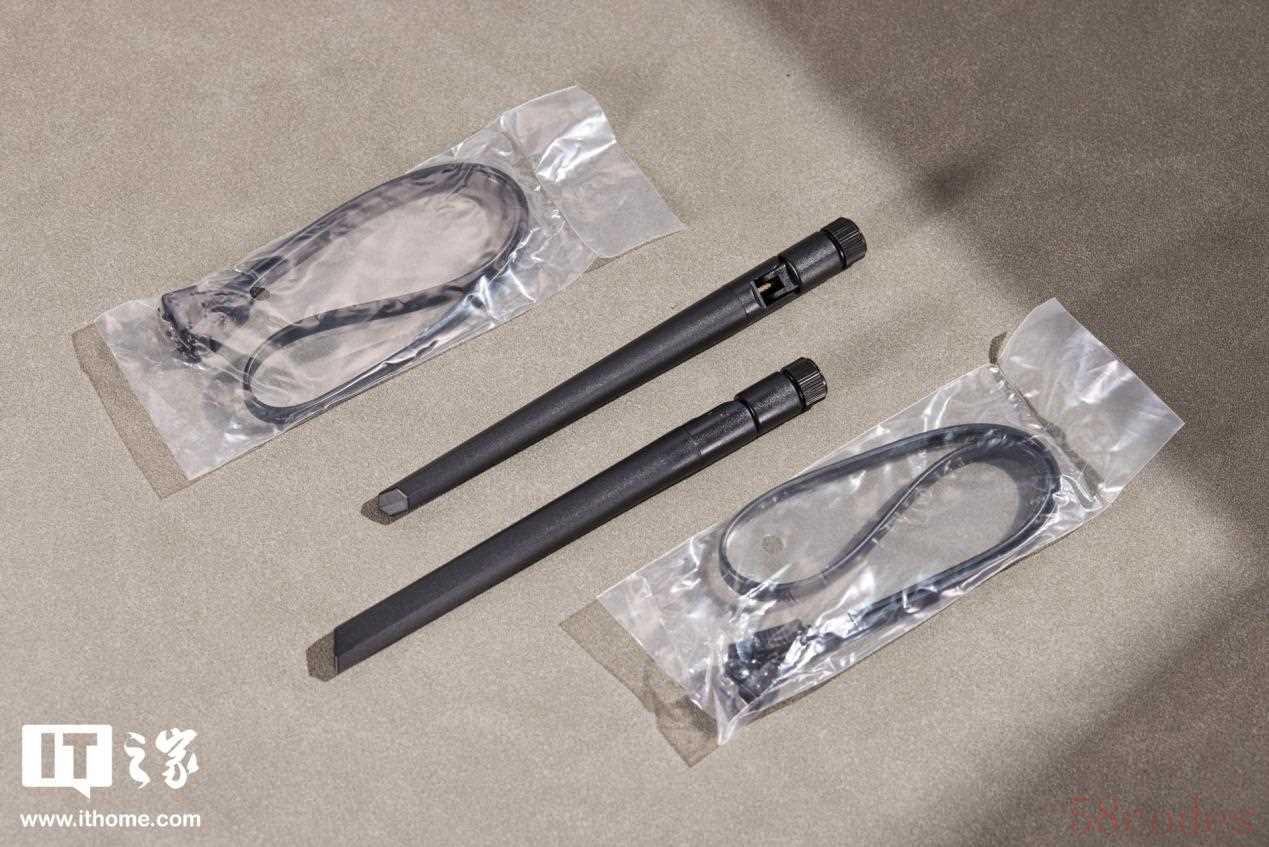 配件方面,包装内附有 1 对 Wi-Fi 6 天线、2 条 SATA 供电线、产品说明书等。
