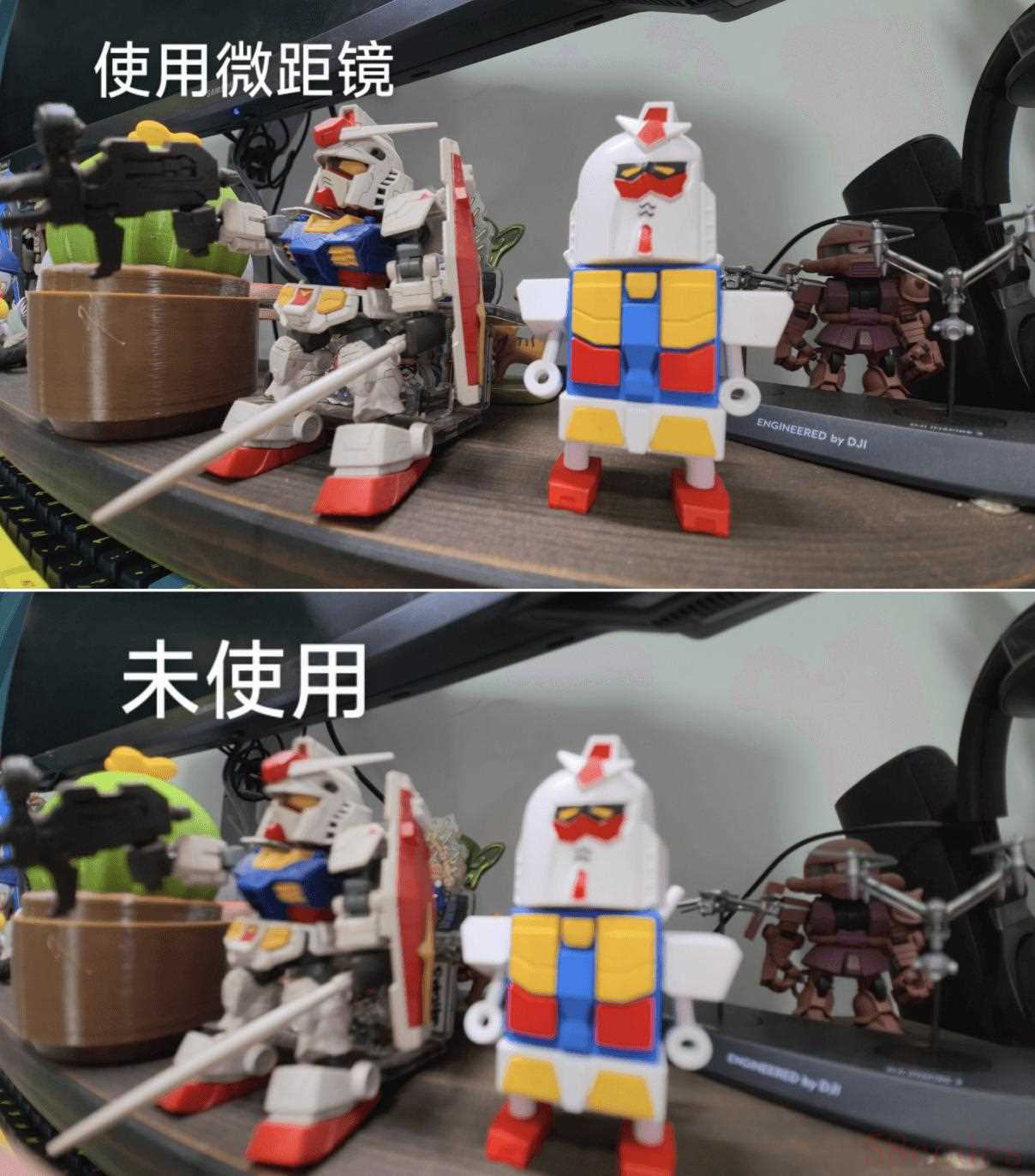 例如这颗微距镜头,它支持最近11cm到75cm的对焦距离,并提供手动对焦(MF)模式,能够进一步缩短 Action 6 的最近对焦距离。从下图就能看出,在同样的拍摄距离,使用微距镜的 Action 6 能够快速对焦主体并保留整体细节。