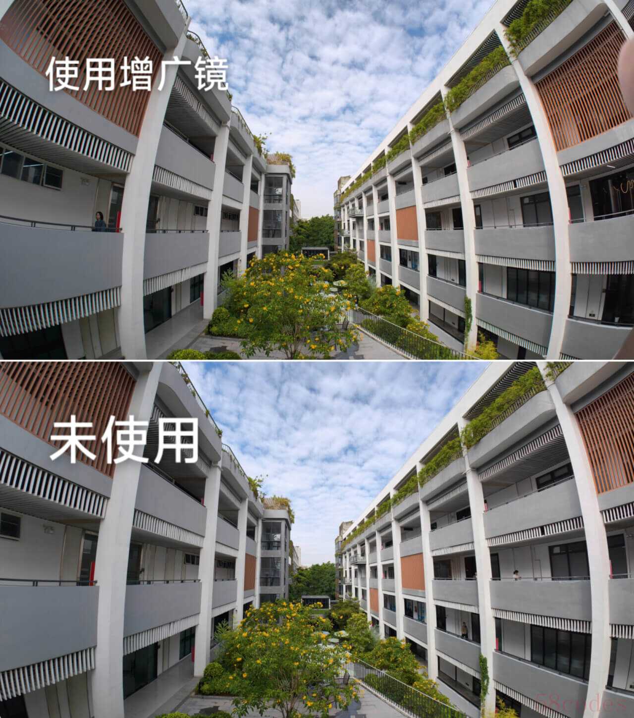 而超广镜头也很好理解,它进一步扩大了 Action 6 的可拍摄视野,最大可达到 182°,非常适合一些运动场景,更广阔的视野也让后期裁切空间更大,可控性更强。