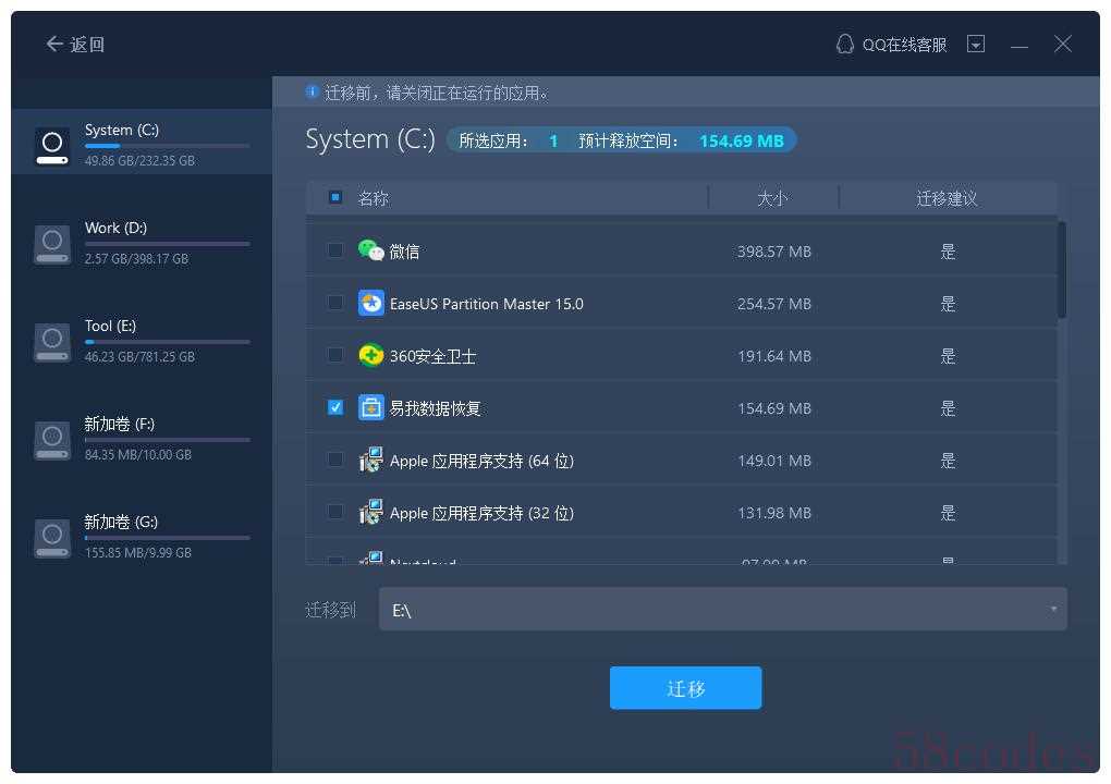 别着急,小编给大家推荐一款专业的电脑迁移工具——易我电脑迁移,它能够很轻松快速地将旧电脑的文件、应用程序等迁移到新电脑。只需要连接上两台大脑,就能完成应用的迁移,步骤非常简单,下面就一起来看看,相信你一定一看就会。