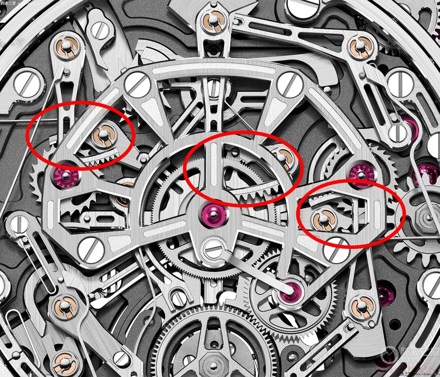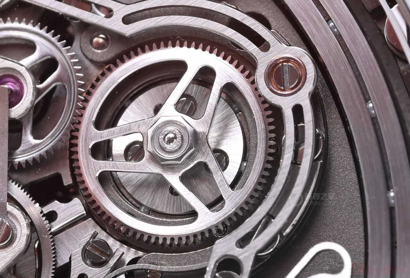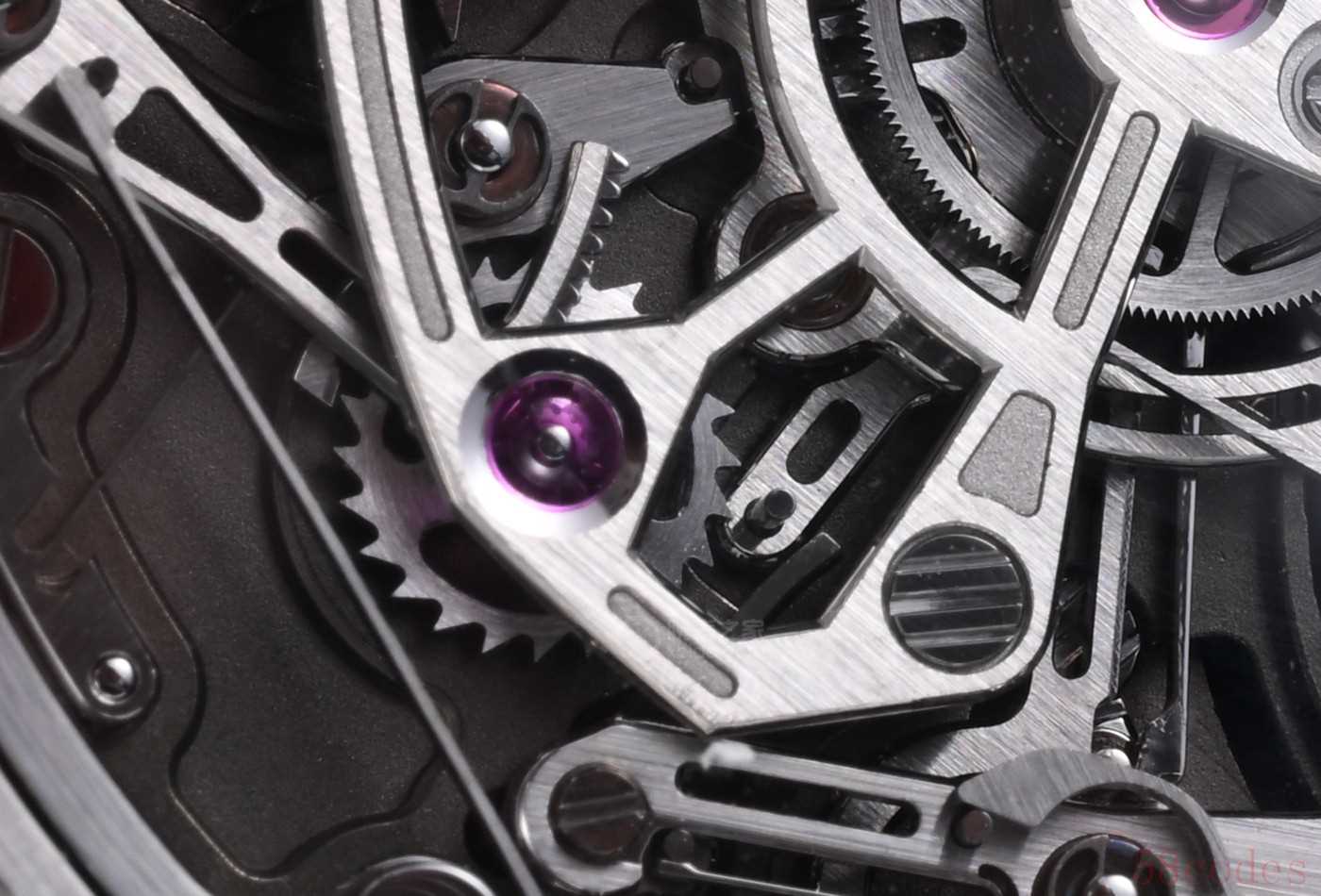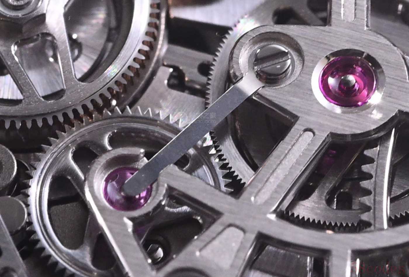 除了两个全新计时结构,RD#5从齿条归零这各位还可以清晰齿轮的形状,这就是负责瞬跳计时指针的狼牙齿轮。