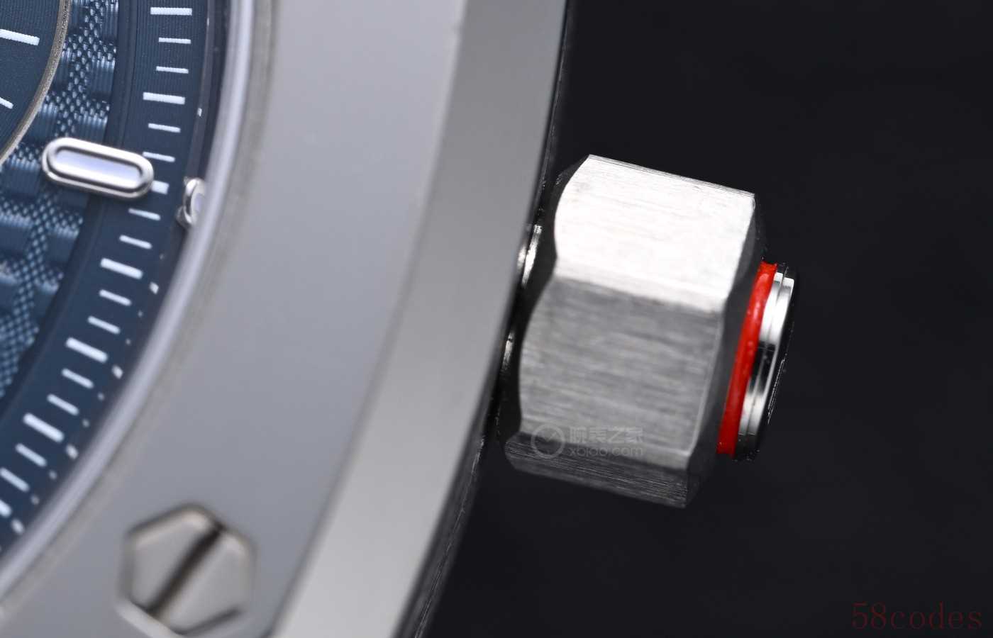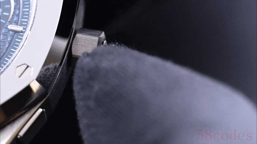 此外,爱彼还在RD#5的表冠上藏了一个“换档按钮”,专门负责切换上链和调时 。这种功能选择器按钮,也是爱彼的经典设计之一,不少皇家橡树概念型都有,而且爱彼APRP机芯厂给RM做的高端复杂款也都有类似配置。它最大的好处就是省事,不用再像普通腕表那样,反复拔出表冠,调节或上链,再做出推入表冠的动作,操作起来更顺手,无论是计时按钮,还是表冠功能选择,RD#5完全是把实用性拉满。
