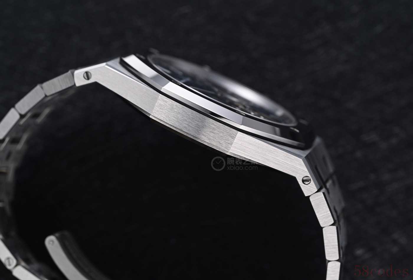 而RD#5腕表的外观设计,就是一只最标准的皇家橡树经典造型腕表:表头表链一体式设计,八角形表圈。如果挡住表盘,无论尺寸还是造型,它就是一只JUMBO 16202。而在盘面设计上爱彼也留有惊喜。