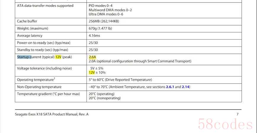 但是3.5寸就不一样了,由于需要12V的供电,而电脑的USB接口有没有12V输出,所以就需要外接电源供电。所以我们选购的第一个要点就产生了:外接电源的电流该多大呢?我们不需要瞎猜,也不用听商家忽悠,直接找硬盘的用户手册一查就清楚了。