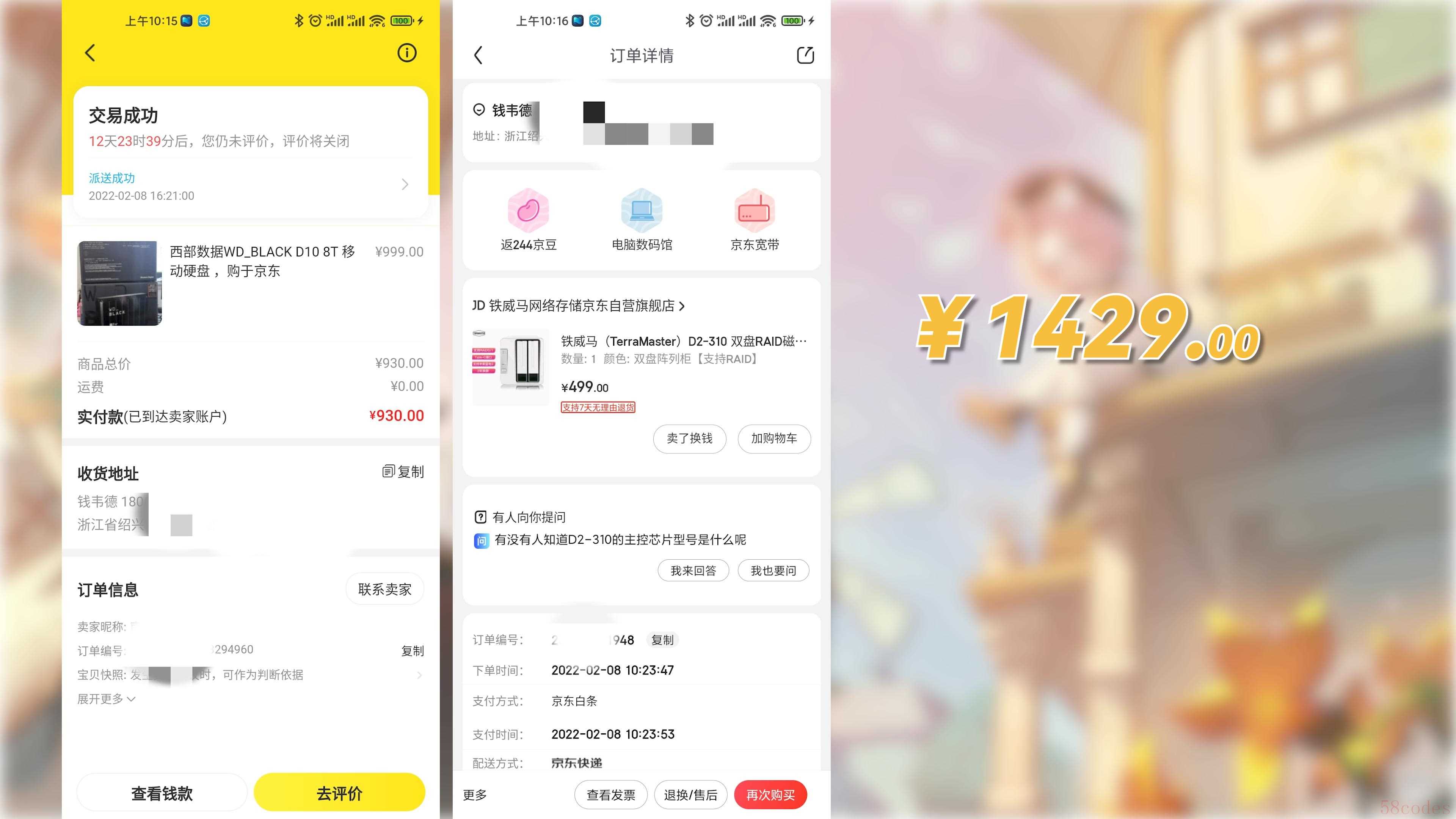 大家好我是钱韦德,后台总是有很多小伙伴询问硬盘盒选购的问题,所以今天我和大家来聊一下怎么样选购硬盘盒。很多小伙伴使用的是笔记本,没有办法装3.5寸的机械硬盘。又因为2.5寸没什么CMR硬盘能选,而且容量也不够装自己的蒸汽游戏库,所以这次我斥巨资1500块钱,买了一个西部数据的移动黑盘——D10 8T版本,一个铁威马的两盘位硬盘柜,和大家讲一讲该怎么选购硬盘盒和硬盘柜。