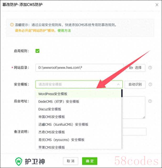 1、利用网站漏洞入侵2、利用系统漏洞入侵3、利用软件漏洞入侵4、利用远程桌面入侵我们需要对这些途径都做好防护措施,方可防止服务器被入侵。1、利用网站漏洞入侵防护办法网站漏洞是黑客最常用的入侵途径,因为寻找漏洞方便,实施入侵容易。经护卫神安全团队分析,黑客主要利用SQL注入漏洞和在线上传漏洞进行入侵,非法篡改数据库,或是上传webshell。有技术的管理员可以修复网站漏洞,不过实际上不太可行,因为网站文件一般都比较多,修复起来麻烦不说,往往出现修复完一个漏洞却新增几个新的漏洞。建议还是部署专业的防护软件,使用防篡改技术和WAF解决问题。推荐使用《护卫神.防入侵系统》,内置大部分CMS的防篡改规则(如下图一),可有效杜绝黑客上传Webshell。WAF模块可以拦截SQL注入攻击、XSS攻击、漏洞扫描攻击,并可对网站后台进行保护,只有授权用户可以访问后台(如下图二),未授权用户一律不能访问后台,彻底杜绝利用后台漏洞实施入侵。另外还自带Webshell查杀功能,查杀率高达99%,进一步提升网站安全。