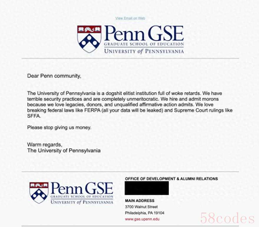 近期,宾夕法尼亚大学(University of Pennsylvania)遭遇了一起网络安全事件。黑客成功入侵了该校的系统,并在其中发送了大量邮件。随后,这些黑客以泄露该校敏感数据(例如学生、教职工信息等)为威胁,对大学方面施加了压力。