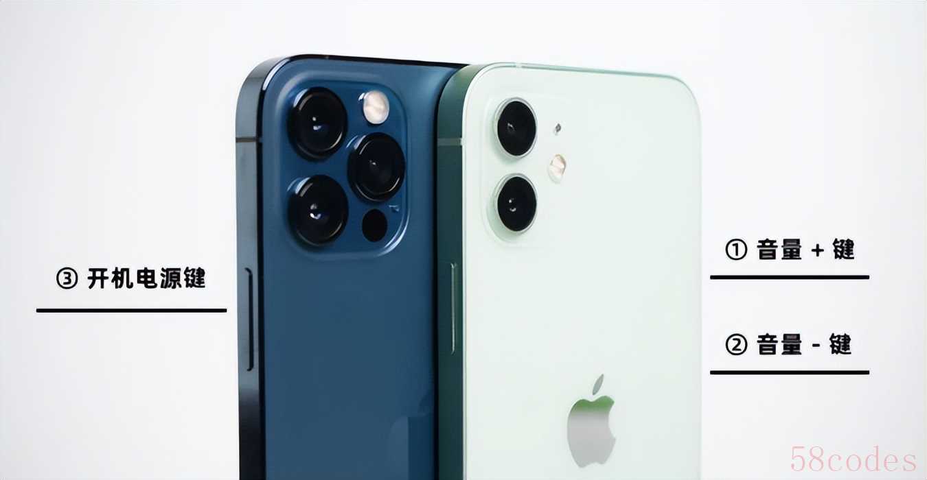 "注意:" 如果是iPhone 7或更新机型,请按住侧边按钮和音量调低按钮。