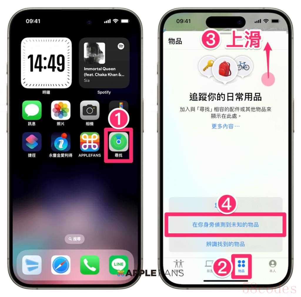 但我们也是有遇不会跳出通知的情况,所以另一个建议是定期到《寻找》App 里察看是否有未知的AirTag 长时间随着你移动。查询方式如下: