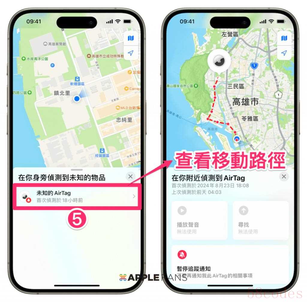 - 点选【未知的AirTag】,进入后可以查看此未知AirTag 随着我们移动的路径。