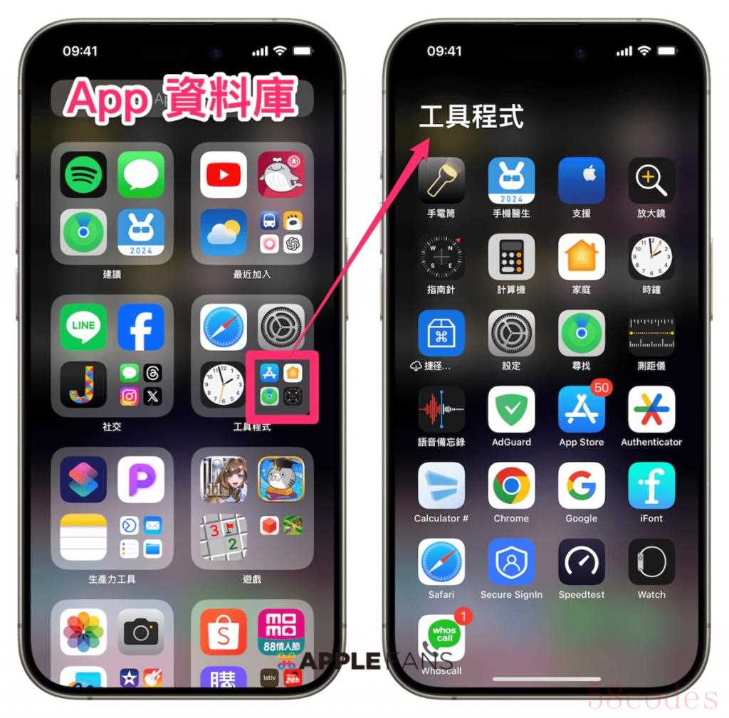 - iPhone 主画面滑到最右边的「App 资料库」,可以浏览iPhone 内的所有已安装的App 。