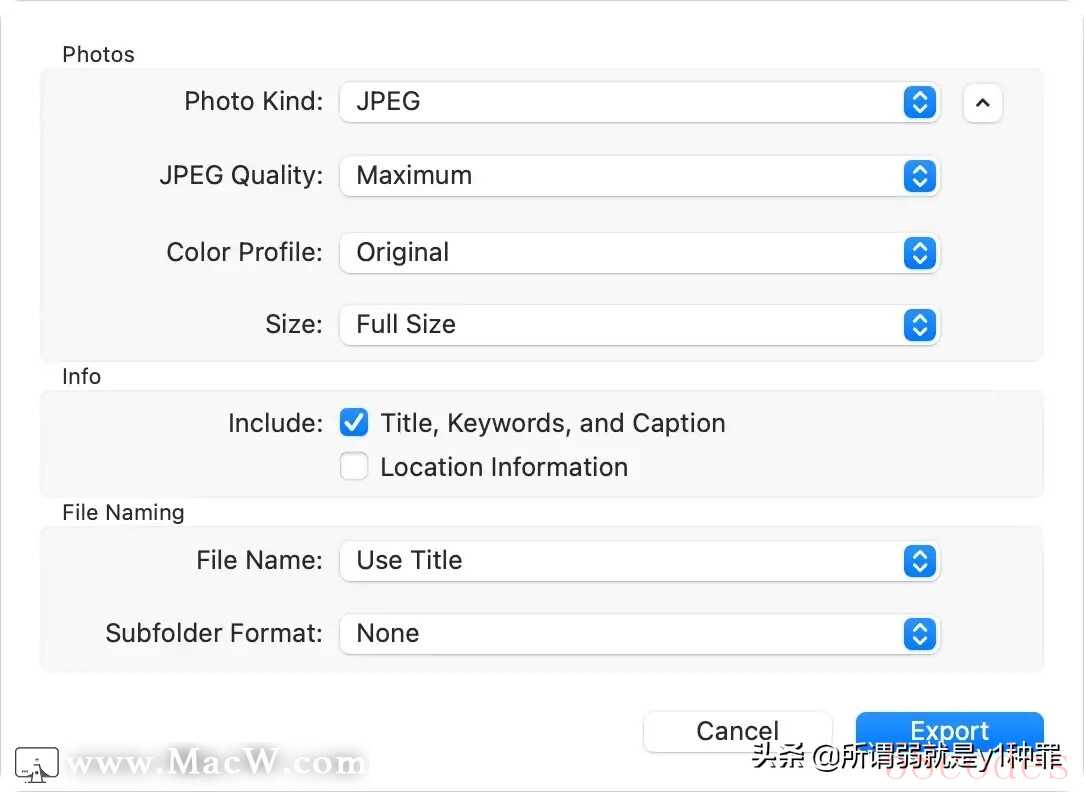 您可以取消选中位置信息以在导出时抑制图像元数据中的地理位置。欢迎来到macw!关注公众号麦克窝获取更多优惠,macw年卡优惠可以联系小编。