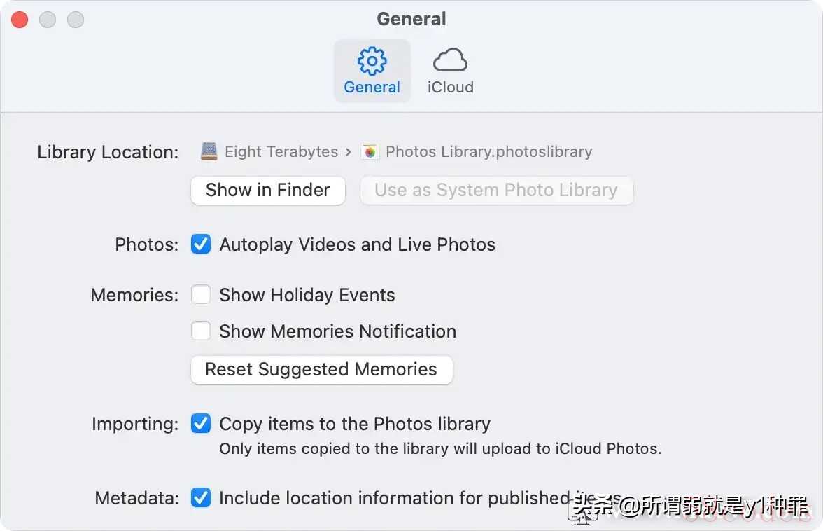 如何在 macOS 照片中选择退出位置共享还不是很清楚。您可以使用使用迄今为止过时的语言的全局设置,您会因为不理解其目的而被原谅。在“ 照片”>“首选项”>“常规”中,注意底部标记为“元数据:包括已发布项目的位置信息”的复选框。当照片具有可让您直接发布到 Twitter、Facebook 和其他服务的附加组件时,这种描述更有意义。随着 Apple 转向共享服务,您可能不知道“已发布的项目”意味着“您正在共享的项目”。